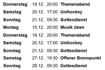 Hier der Link zum Brennpunkt-Info mit Monats-Programm. Am zweiten Sonntag im Monat haben wir keinen Gottesdienst. Wir feiern dann Chile bi de Lüüt. Bitte beachten sie unsere Datenschutzerklärung nach dem Datenschutzgesetz (DSG)