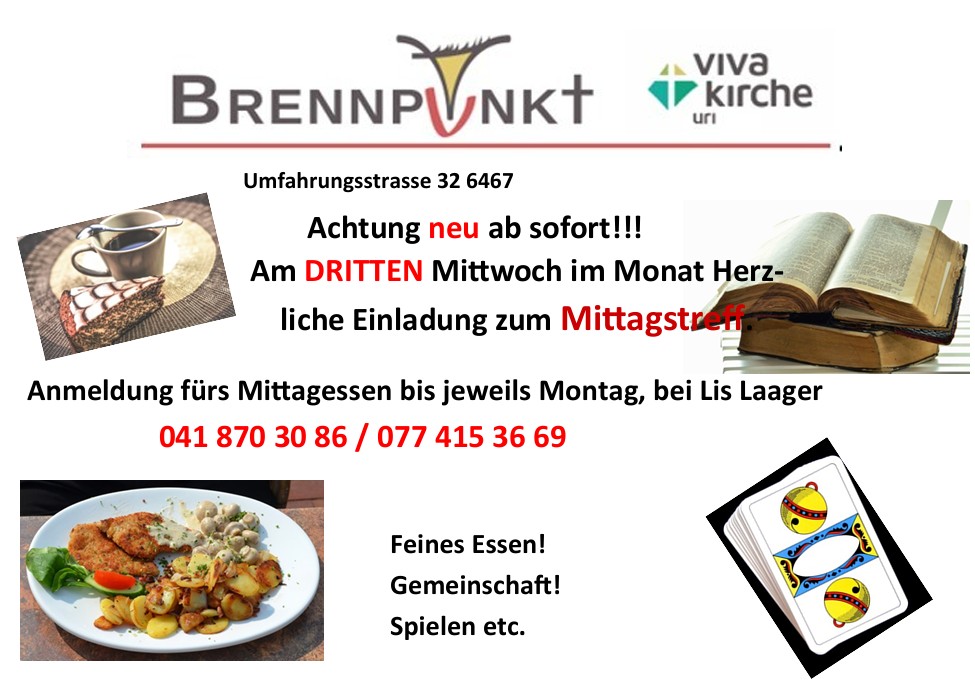 Der Brennpunkt, die Vivakirche Uri ist 30 Jahre alt.Das feiern wir gebührlich!Reserviere dir das Datum! Eine Einladung folgt. Wir freuen uns, mit dir zu feiern.
